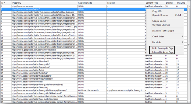 - Download All Images: This option downloads all the crawled images with their source page i.e. from where they were being found by the crawler.